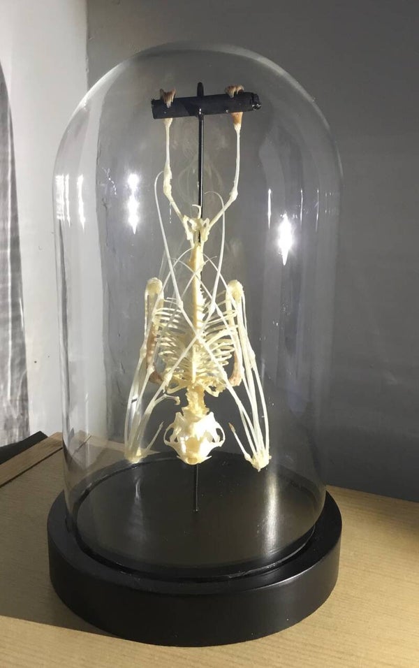 Stolp 22cm x 10cm met Vleerhond skelet Cynopterus brachyotis
