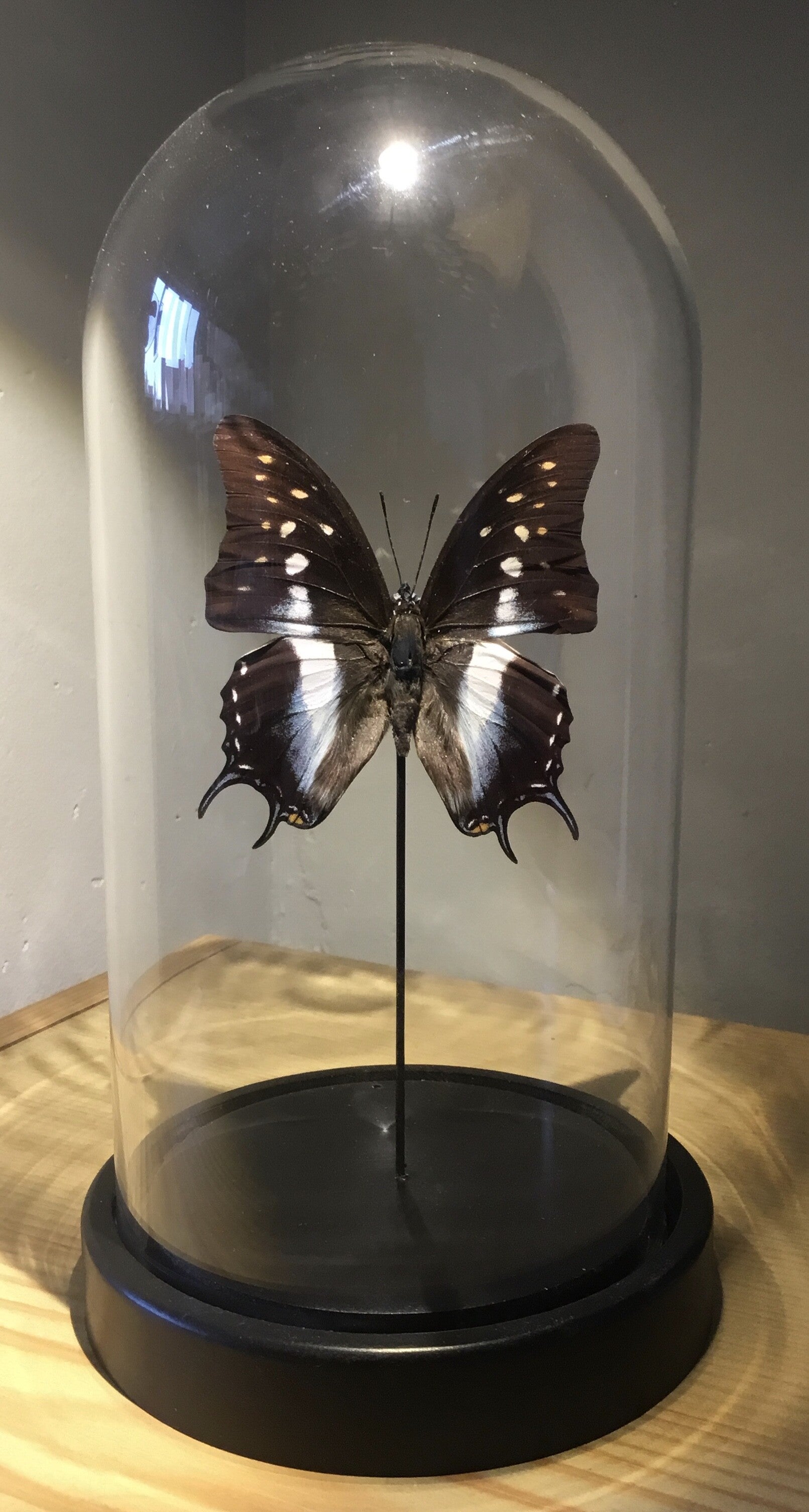 Stolp 22cm x 10cm met vlinder Polyura cognatus uit Sulawesi