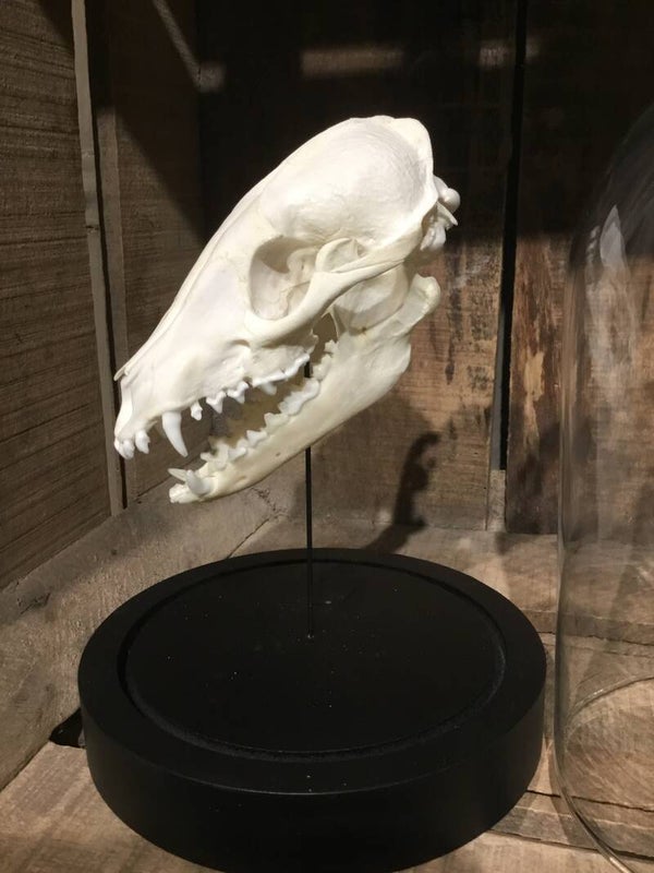 Schedel van wasbeerhond in stolp