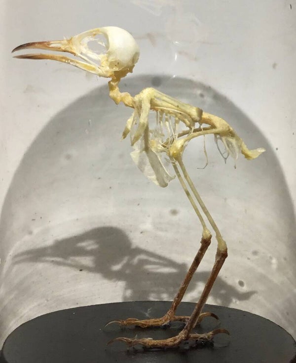 Stolp 13cm x 9cm met skelet Prinia inornata ofwel "Witteugelpriana"