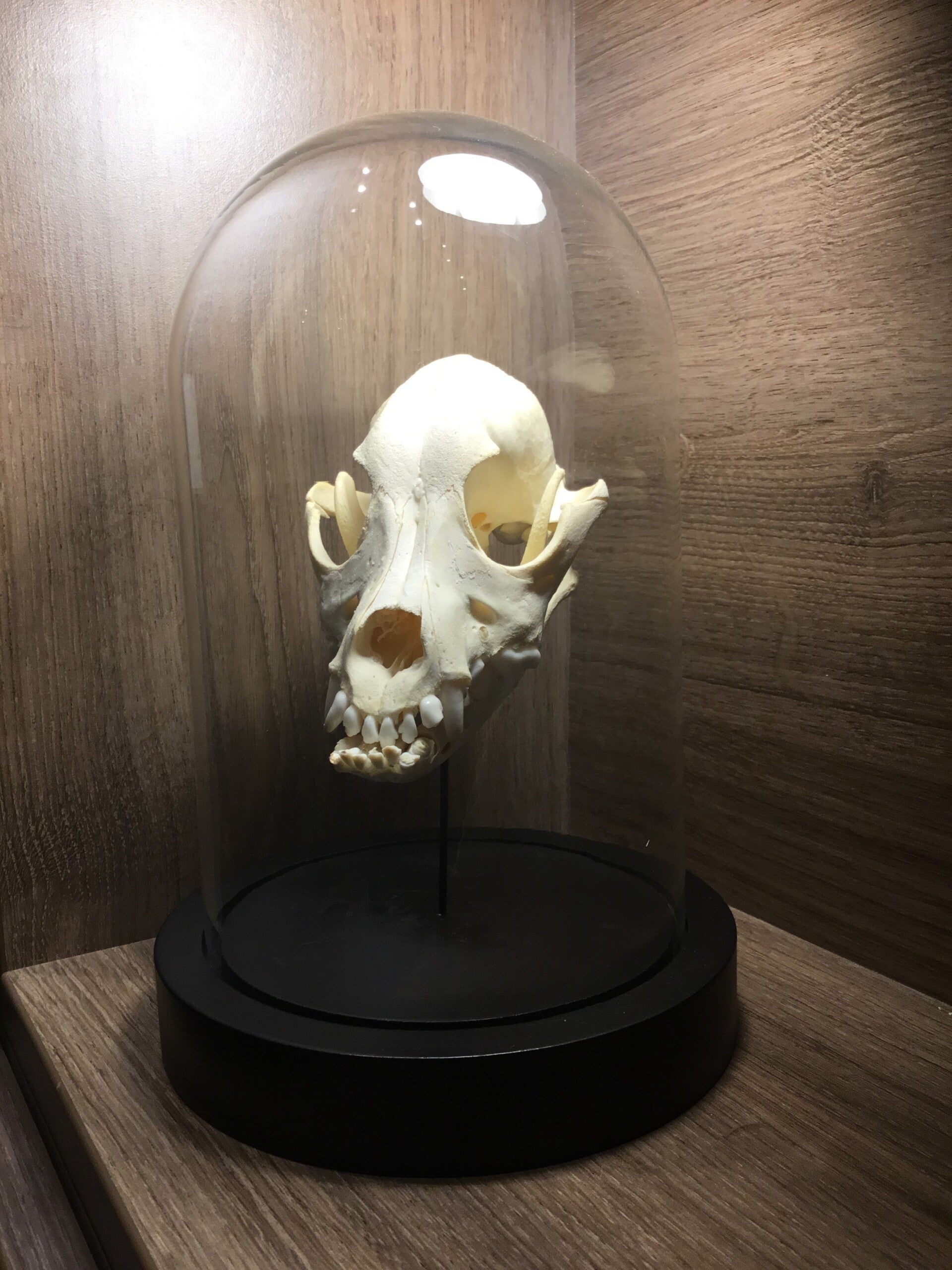 Honden schedel in stolp.