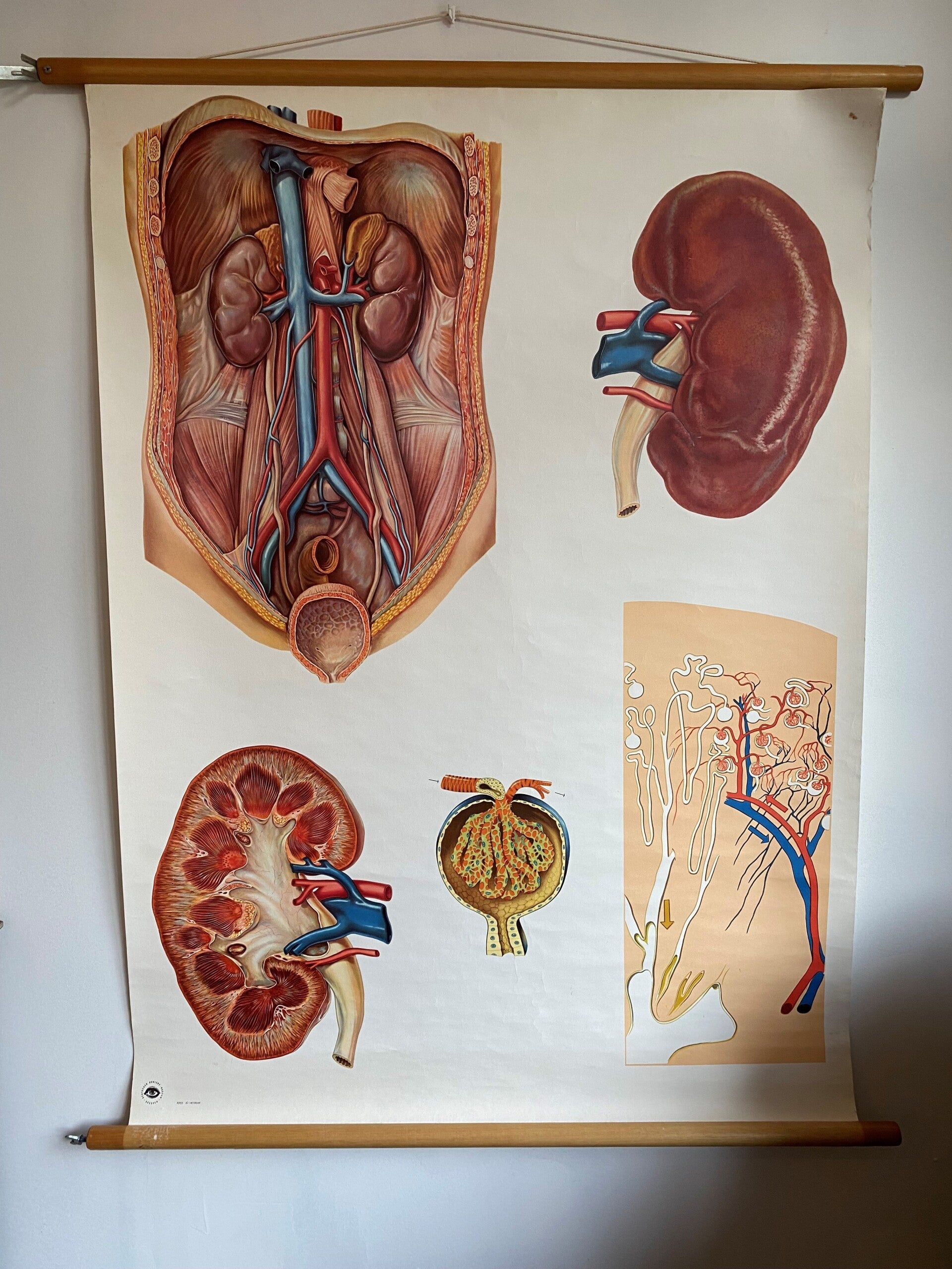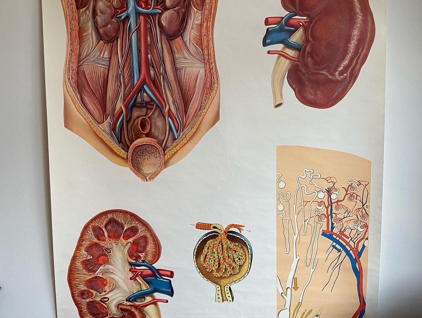 Oude schoolkaart van de nieren.