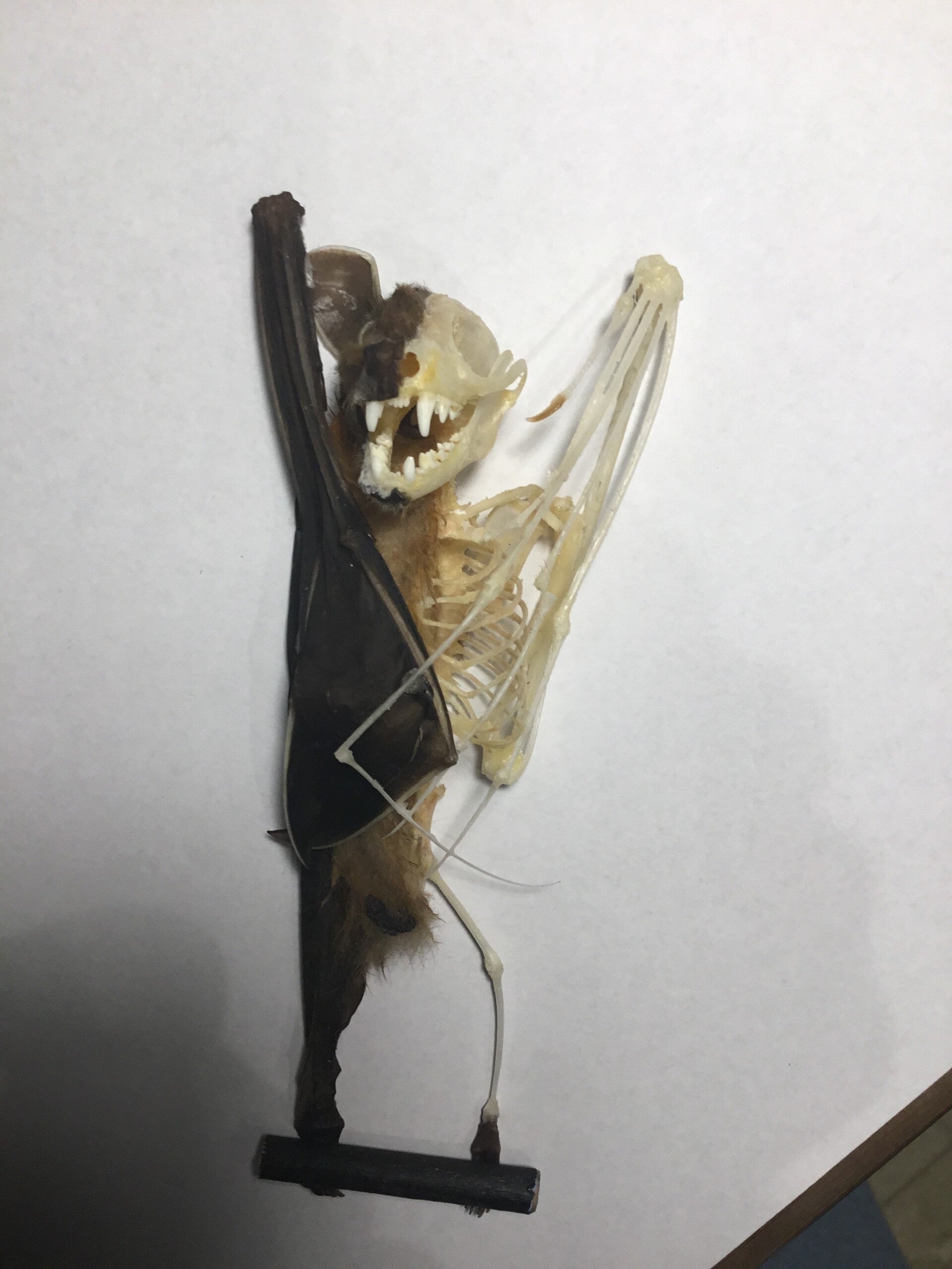 Vleerhond Cynopterus brachyotis half skelet in stolp
