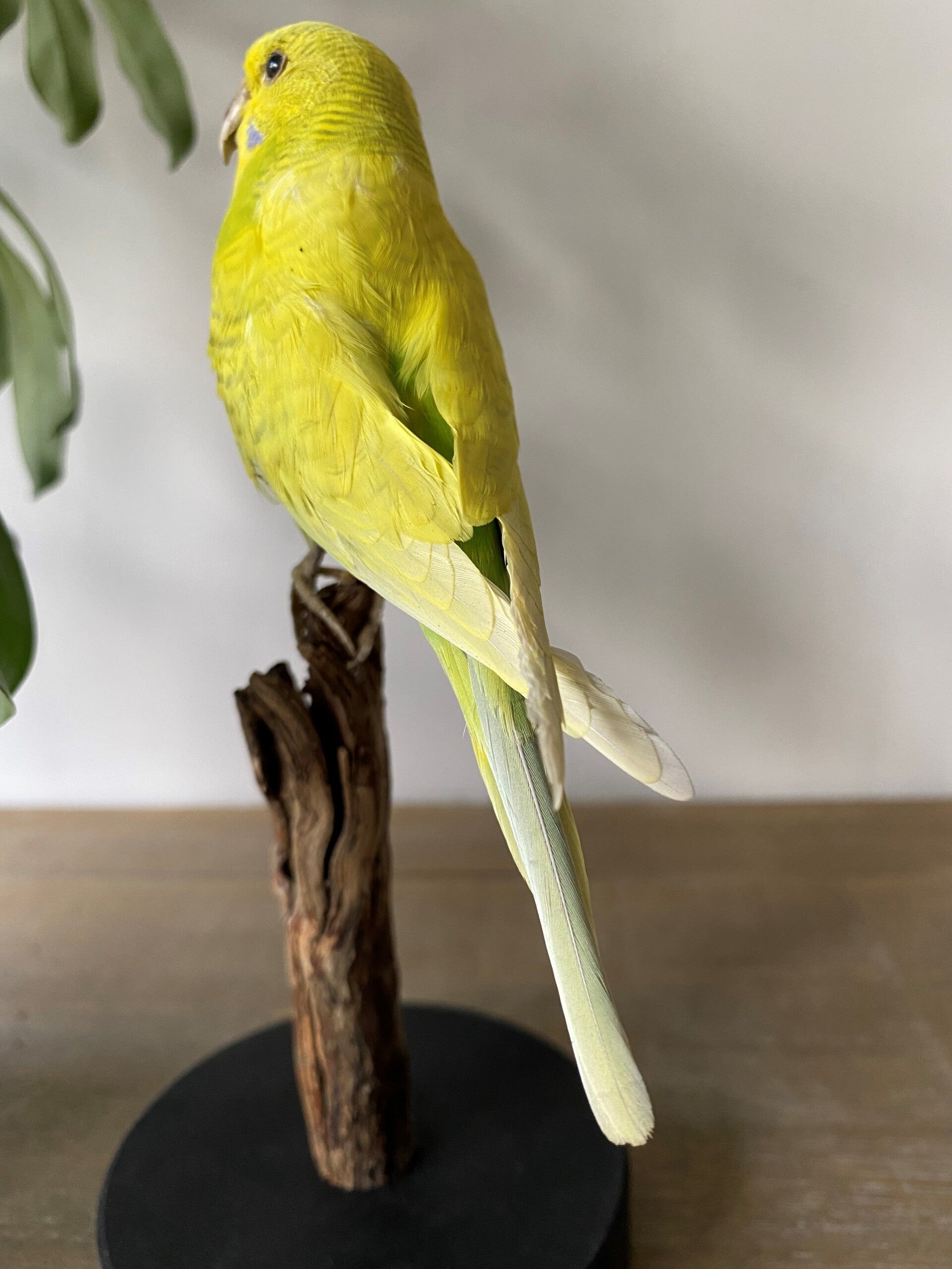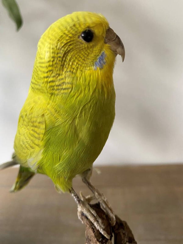 Opgezette gele parkiet met gesloten vleugels