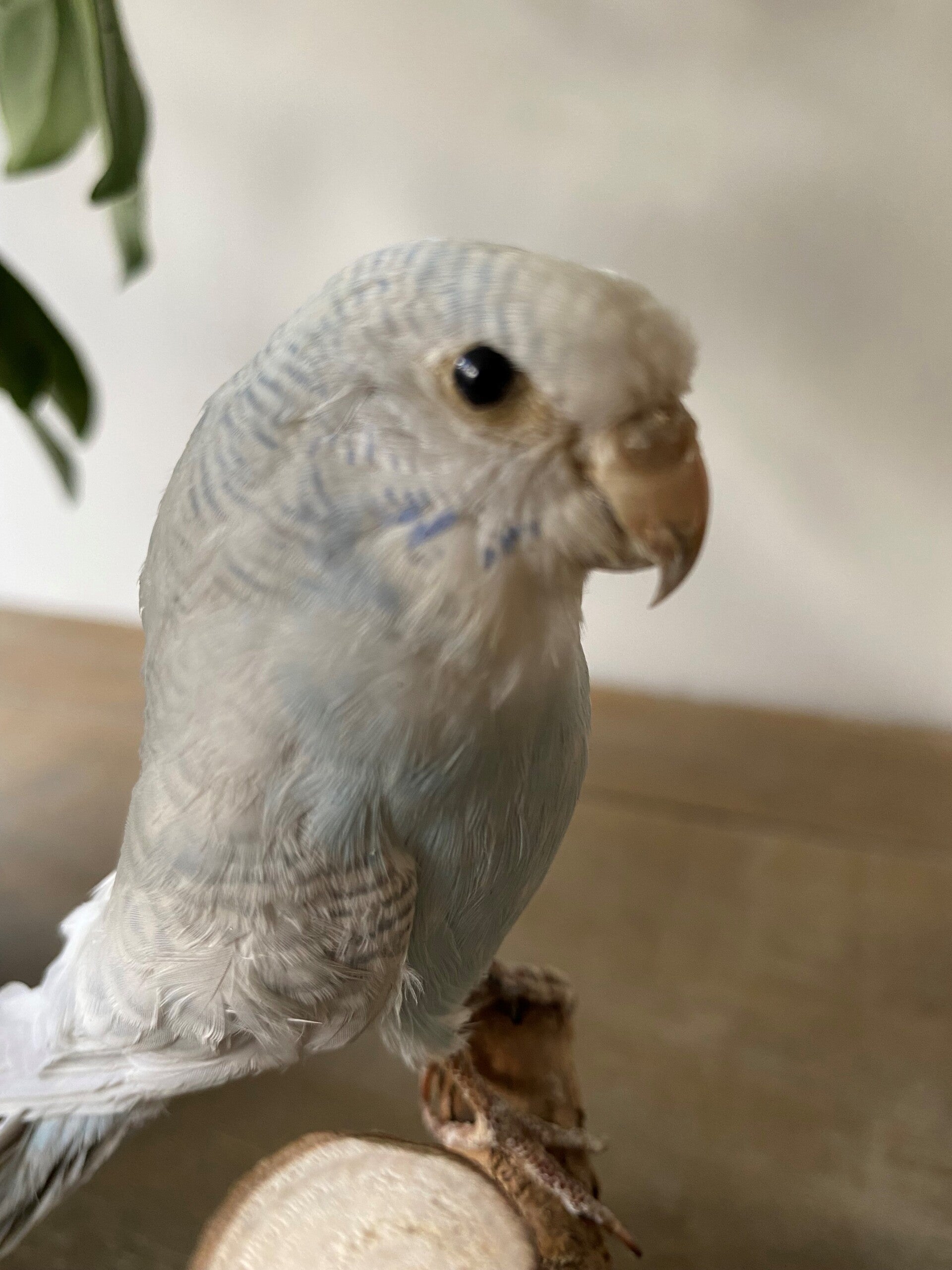 Opgezette witte parkiet met gesloten vleugels